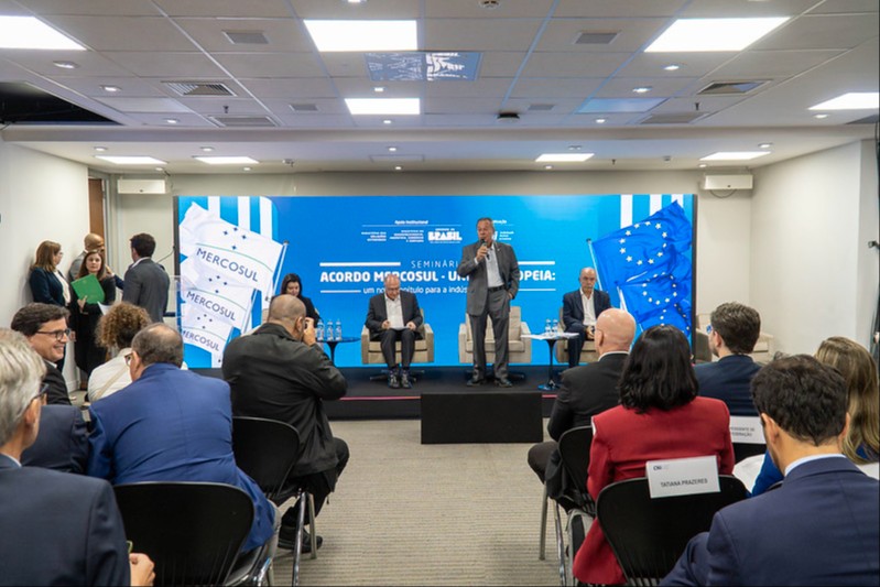 A abertura do seminário reuniu representantes do governo e do setor produtivo para discutir os impactos do Acordo Mercosul-União Europeia, que entra em fase de aplicação provisória em maio, após mais de duas décadas de negociações.